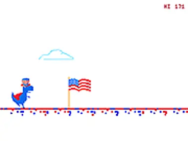 Ο δεινόσαυρος είναι πολύ ενθουσιασμένος που γιορτάζει αυτή την ξεχωριστή μέρα. Ας περάσουμε τέλεια μαζί αυτή την 4η Ιουλίου! Νιώθεις πατριωτικά σήμερα; Προκάλεσε αυτό το υπέροχο παιχνίδι τρεξίματος και φέρε τη σημαία σπίτι με ασφάλεια. Ποιο είναι το καλύτερο σκορ που μπορείς να πετύχεις; Έλα να παίξεις τώρα και ας το ανακαλύψουμε!