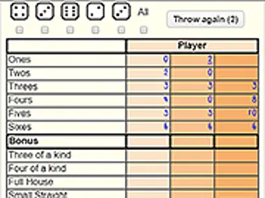Το κλασικό παιχνίδι με ζάρια. Ρίξτε τα ζάρια και καταχωρίστε το σκορ σας. Συνδυάστε τους πόντους των ζαριών για να σχηματίσετε για παράδειγμα ένα φουλ ή ένα καρέ. Παίρνετε τους περισσότερους πόντους όταν όλα τα ζάρια έχουν την ίδια τιμή