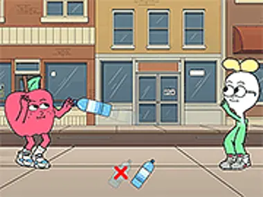 Apple and Onion: Bottle Catch ένα διασκεδαστικό και υπέροχο παιχνίδι κινουμένων σχεδίων για να παίξετε. Οι Apple and Onion θα πετάνε το μπουκάλι ο ένας στον άλλον, και θα το περιστρέφουν στο χέρι τους. Όταν το δείτε να δείχνει προς τον ουρανό, κάντε κλικ για να το πετάξουν στον ουρανό, και καθώς ανεβαίνει και μετά κατεβαίνει, χρησιμοποιήστε το ποντίκι για να πιάσετε άλλα μπουκάλια στον αέρα μαζί του, γιατί όσο περισσότερα μπουκάλια συλλέγετε, τόσο μεγαλύτερο γίνεται το σκορ σας. Τώρα, βεβαιωθείτε ότι θα πατήσετε στην οθόνη την κατάλληλη στιγμή όταν το μπουκάλι κατεβαίνει, ώστε οι χαρακτήρες να το πιάσουν, αλλιώς χάνετε και πρέπει να ξεκινήσετε από την αρχή. Μην το αφήσετε να συμβεί, γιατί με κάθε νέα ρίψη που κάνετε το μπουκάλι θα πηγαίνει ακόμα πιο ψηλά στον ουρανό, οπότε προσπαθήστε να φτάσετε στα μεγαλύτερα δυνατά ύψη, ίσως ακόμα και στο διάστημα!