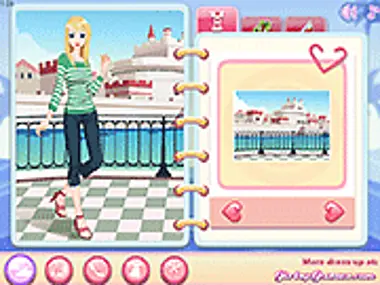 Κάντε κλικ σε μια καρτέλα ντυσίματος στην κάτω-αριστερή γωνία, έπειτα επιλέξτε μία από τις τρεις υποκατηγορίες στην κορυφή της δεξιάς σελίδας του βιβλίου. Δείτε όλες τις διαθέσιμες επιλογές κάνοντας κλικ στις καρδιές για να μετακινηθείτε αριστερά και δεξιά. Για να εφαρμόσετε μια επιλεγμένη επιλογή ντυσίματος, κάντε κλικ στην εικόνα που εμφανίζεται στο πλαίσιο του λευκώματος. Μόλις τελειώσετε να ντύνετε αυτόν τον λάτρη της θάλασσας, κάντε κλικ στο εικονίδιο του λουλουδιού για να δείτε ολόκληρη τη σκηνή.