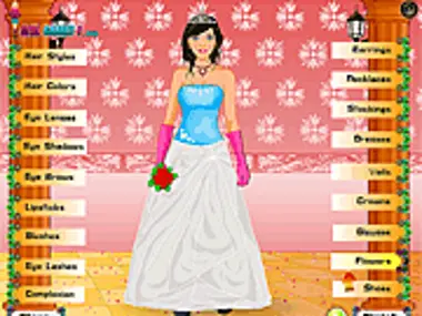 Dress up this bride for her fun autumn wedding. Create your very own look by creating your own hairstyle, makeup, and clothes.