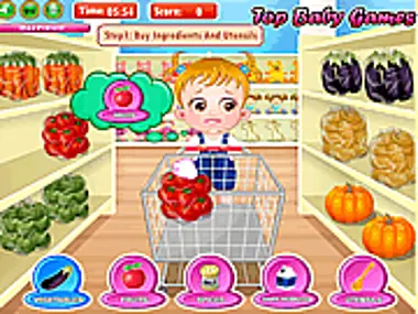 Σήμερα η Baby Hazel θέλει να βοηθήσει τη μαμά να ετοιμάσει το γεύμα της. Ας περάσουμε λοιπόν όμορφα στην κουζίνα!! Το σημερινό γεύμα περιλαμβάνει πουρέ μήλου και νόστιμη λαχανόσουπα. Το πρώτο πράγμα πριν αρχίσουμε να μαγειρεύουμε είναι να πάρουμε τα απαραίτητα εργαλεία και υλικά. Βοήθησε την Baby Hazel να πάρει τα εργαλεία και τα υλικά από το κατάστημα. Μετά πήγαινε την Baby Hazel στην κουζίνα και βοήθησέ την να μαγειρέψει. Τέλος, βοήθησέ την να τακτοποιήσει το φαγητό στο τραπέζι και τάισέ της το νόστιμο γεύμα.