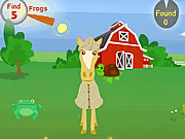 Want to be a detective? Help pilar look for Apples, Bunnies, Carrots, Chickens, Ducks, Frogs, Sheep and Turtles!