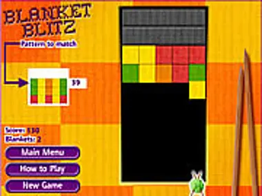 On the left hand side of the screen you will see a blanket pattern. Match the blanket's pattern by swapping colored squares as they move down from the top of your screen.