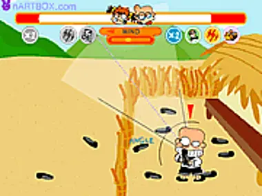 It's battle between a boy and a girl. The girl is throwing rocks while the boy is throwing shoes.