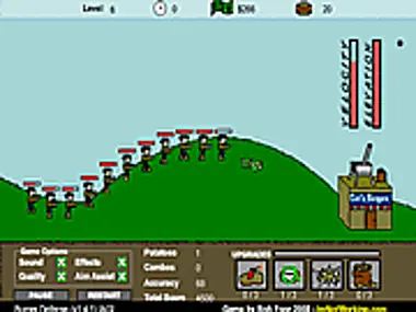 Defend your burger shop by shooting burgers from a cannon at zombies, ninjas, and some sort of homeless hippie?