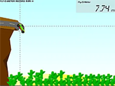 Οδήγησε το αυτοκίνητό σου προς τον γκρεμό και δες πόσο μακριά μπορείς πραγματικά να πετάξεις. Απόφυγε να χτυπήσεις τους κώνους και χρησιμοποίησε το νίτρο για να πάρεις μια επιπλέον ώθηση. Μπορείς επίσης να εκτιναχθείς από το αυτοκίνητο πατώντας το φρένο ακριβώς πριν φτάσεις στην άκρη του γκρεμού. Όσο περισσότερη ταχύτητα αποκτάς, τόσο πιο μακριά πετάς. Το Fly-O-Meter καταγράφει την καλύτερη απόστασή σου - προσπάθησε να σπάσεις το ρεκόρ σου!