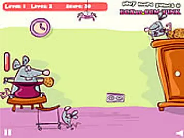 Βοήθησε τα μικρά ποντίκια να πάρουν μερικά μπισκότα για βραδινό. Γέμισε τη σακούλα με μπισκότα για να ολοκληρώσεις το επίπεδο. Προσπάθησε να αποφύγεις τις λαίμαργες αράχνες, θα προσπαθήσουν να φάνε τα μπισκότα σου.