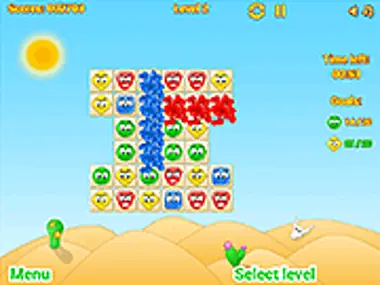 Το Desert Faces είναι ένα διασκεδαστικό παιχνίδι αντιστοίχισης με πρόσωπα στην έρημο. Στόχος σας είναι να ταιριάξετε τριάδες για να τις αφαιρέσετε από το πλέγμα. Με 25 επίπεδα, πρέπει να επιλύσετε διαφορετικές εργασίες μέσα σε σύντομο χρονικό διάστημα σε κάθε επίπεδο. Σε ορισμένα επίπεδα θα πρέπει να συλλέξετε ένα σεντούκι θησαυρού. Προσέξτε τον στόχο και τον χρόνο που απομένει. Καλή διασκέδαση παίζοντας αυτό το παιχνίδι εδώ στο Y8.com!