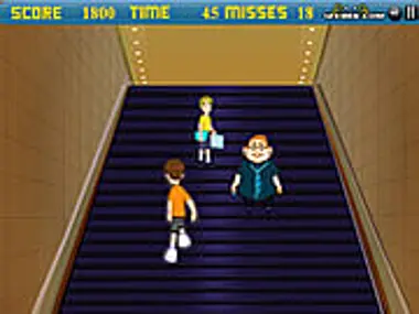 Make the boy to move on the escalator without hitting other people. Survive for as long as you can.