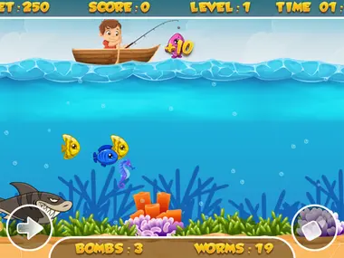 Το Fishing Frenzy είναι ένα πολύ δημοφιλές παιχνίδι για ψάρεμα! Σε αυτό, μάχεσαι για τη λεία σου, ψάρια, ανατινάζεις μανιώδεις καρχαρίες, ιππόκαμπους, συλλέγεις αστερίες, κοχύλια, πιάνεις φυσαλίδες με βόμβες, σκουλήκια, θησαυρούς, ρολόγια και δώρα! Πρέπει να συλλέξεις όσα περισσότερα μπορείς σε αυτό το παιχνίδι! Πέτυχε το υψηλότερο σκορ σου και γίνε ο κορυφαίος παίκτης σε αυτή τη θαλάσσια μάχη! Άγγιξε τα κουμπιά ή τα πλήκτρα βέλους για να μετακινηθείς και να ψαρέψεις.