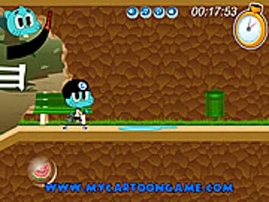 Ο Gumball κάνει σκέιτμπορντ στο πάρκο, όπου υπάρχουν πολλά εμπόδια. Η αποστολή του Gumball είναι να ξεπεράσει όλα τα εμπόδια και να φτάσει με ασφάλεια στη γραμμή τερματισμού. Μάζεψε τα αντικείμενα που βλέπεις στο δρόμο.