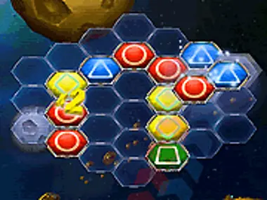 Hexes already in space ! Collect them all! Drag figures from bottom onto the game field to make lines of three or more hexes of one color.