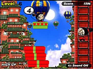 Stack as many gifts as you can by shooting your enemies on the balloons.