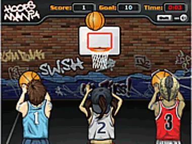 Hoops Mania is completely addicting sports & skill game fun. It's time to go big or go home with Hoops Mania, the best basketball shooting game of all time! You control three different street players trying to wrack up as many baskets as you can in 30 seconds.