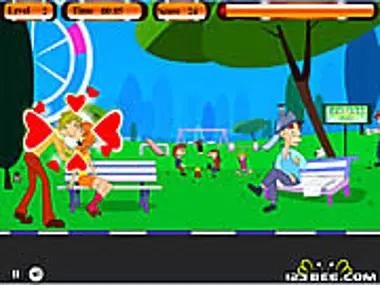 At the public park, make the young guy to kiss his girlfriend, who is accompanied by her dad. Remember! Make the guy to kiss without getting noticed, as otherwise you will lose the game.