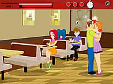 Ο Μπεν και η Άντζελα είναι πολύ πολύ ερωτευμένοι... τόσο ερωτευμένοι που δεν μπορούν να σταματήσουν να φιλιούνται! Επειδή δεν έχουν κανένα πρόβλημα με το φιλί σε δημόσιους χώρους, φιλιούνται παντού: στο εστιατόριο φαστ φουντ, στον κινηματογράφο ή στο πάρκο. Βοήθησέ τους να φιλιούνται χωρίς να τους πιάσουν οι γύρω τους, γιατί δεν είναι ωραίο για τους άλλους να τους παρακολουθούν. Αλλά πρόσεχε, γιατί υπάρχουν τρία επίπεδα (εύκολο, κανονικό και δύσκολο). Δοκίμασε τις ικανότητες και τα αντανακλαστικά σου. Καλή τύχη και καλή διασκέδαση!