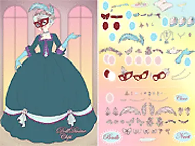 Βυθιστείτε στην αυλή της Γαλλίας του 18ου αιώνα καθώς ντύνετε την αυστριακής καταγωγής, Γαλλίδα βασίλισσα Μαρία Αντουανέτα. Διαλέξτε από πολλές περούκες και χρώματα, όμορφα φορέματα και κορσέδες, καθώς και πληθώρα αξεσουάρ και στολίδια drag and drop. Αυτή η περίοδος στην ιστορία ονομάστηκε Ροκοκό και ήταν γνωστή για τα περίτεχνα, ευφάνταστα και οργανικά σχέδιά της. Η ενδυμασία της εποχής χαρακτηριζόταν από απαλά, παστέλ χρώματα, περίτεχνες, λευκές πουδραρισμένες περούκες και περίπλοκα, οργανικά σχέδια. Οι κορσέδες έσφιγγαν τις μέσες, ενώ τα κρινολίνα στις φούστες δημιουργούσαν υπέροχα, φαρδιά φορέματα. Η εξωτερική φούστα ήταν συχνά ανοιχτή, αποκαλύπτοντας το μεσοφόρι από κάτω. Μπορείτε να δοκιμάσετε όλες αυτές τις μόδες μόνοι σας, δημιουργώντας τη δική σας ιστορική πριγκίπισσα σε αυτό το παιχνίδι ντυσίματος.