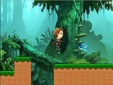 Shoot the monsters as you jump over gaps. Avoid their fire to conserve your health.