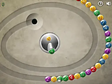 Match pairs of balls that add up to 10. Balls can only be matched if they can be connected by a line that turns at most twice