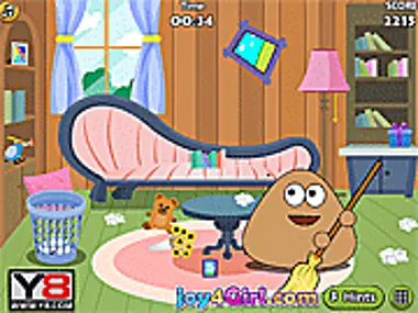 After a great sleepover night. The room was in chaos. Let's help Pou clean up the room, make it beautiful and clean again. Have fun!