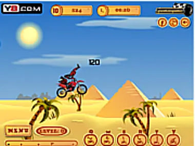 Οι πυραμίδες δεν είναι μόνο σπουδαία αξιοθέατα για τους τουρίστες, αλλά θα μπορούσαν να χρησιμοποιηθούν για μερικά extreme ακροβατικά με μοτοσικλέτα. Προσπάθησε να κάνεις απίστευτα κόλπα, αναμεμειγμένα με τούμπες προς τα μπρος ή προς τα πίσω, και να συγκεντρώσεις όσους περισσότερους πόντους μπορείς σε όλα τα οκτώ καταπληκτικά επίπεδα. Να είσαι πολύ γρήγορος καθώς ο χρόνος είναι ένα σημαντικό συστατικό της βαθμολογίας σου, μάζεψε όσο περισσότερα χρυσά νομίσματα μπορείς και κάνε ό,τι καλύτερο μπορείς για να μην τρακάρεις. Καλή διασκέδαση παίζοντας Pyramid Moto Stunts!