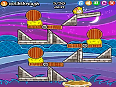 Click bails of hay to cause chain reactions in the physics world. Get your chicken to the basket.