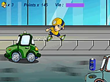 Skate your way to the street and avoid being bump by oncoming cars. Collect some cans for points.