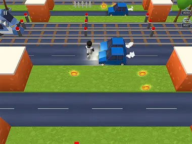 Ζήστε την κλασική δράση arcade του Crossy Road σε στυλ Roblox! Πλοηγηθείτε μέσα από ατελείωτους δρόμους, ποτάμια και σιδηροδρομικές γραμμές, αποφεύγοντας τα εμπόδια και στοχεύοντας στην υψηλότερη βαθμολογία. Με τα ζωντανά γραφικά voxel-style και το απλό αλλά απαιτητικό gameplay, είναι ένα νοσταλγικό ταξίδι τόσο για νέους όσο και για έμπειρους παίκτες. Αποφύγετε τα Εμπόδια: Αποφύγετε τα αυτοκίνητα, πηδήξτε πάνω από κορμούς και μείνετε μακριά από τα τρένα. Συνεχίστε: Όσο πιο μακριά πάτε, τόσο υψηλότερο είναι το σκορ σας. Μείνετε σε Εγρήγορση: Μην μείνετε αδρανείς για πολύ καιρό, αλλιώς μπορεί να σας πιάσουν! Απολαύστε αυτό το παιχνίδι εδώ στο Y8.com!