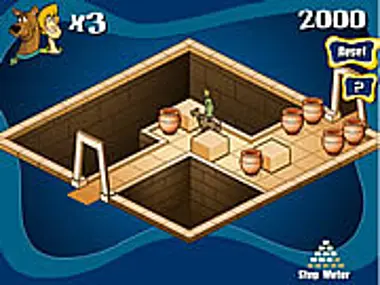 Move the pyramid stones as Scooby and Shaggy. Don't take too many steps or Anubis will scare you!