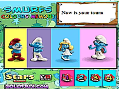 Θυμηθείτε τη σειρά των χρωμάτων και μετά αντιγράψτε την κάνοντας κλικ στους χαρακτήρες των Στρουμφ παρακάτω. Αν κάνετε λάθος, θα πρέπει να ξεκινήσετε από την αρχή!