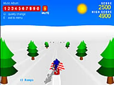 Down the hill there 15 jumps. See how high you can get your run out of ramps to jump off.
