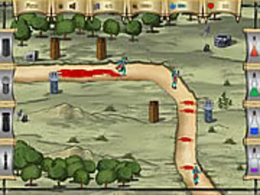 You need to protect your kingdom from invaders. Invaders move along a path. You need to build towers close to the path, so they'll shoot the enemies. Try to kill them all before they reach your castle. If you see that towers won't manage to kill all enemies and you have enough magic points, you can use one of the spells.