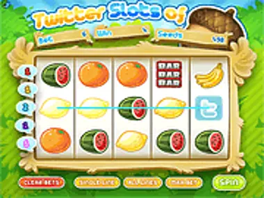 A classic slot game with fruits and twitter logos where you bet money to win ... more money!