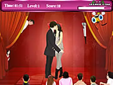 Zanessa is very keen to kiss Zac but the people are always interrupting them. Help out the pair to kiss each other ecstatically. Instructions : Beat the people who are staring at the Vanessa while she is kissing her boyfriend, Zac efron. Use mouse to interact. Attaining the kissing target within given time duration in each level will make you to play further levels. Beat the people before staring rate exceeds otherwise you will lose the game. M for Mute Spacebar for Pause.